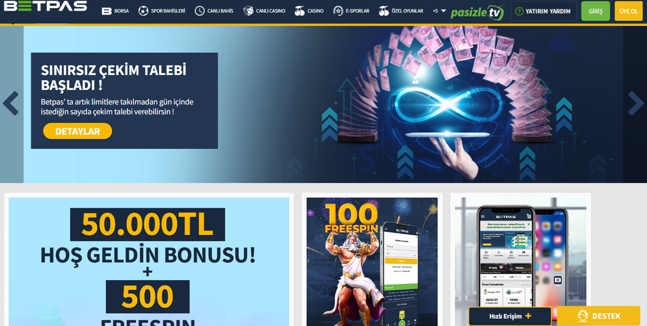 Betpas giriş yaptıktan sonra sunduğu özel deneme bonusu ile kullanıcılarına güvenilir, keyifli ve avantajlarla dolu bir bahis ortamı yaratmayı hedefleyen, sektördeki en köklü platformlardan biridir.